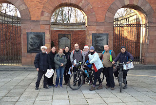 Szybko okazało się, że w dziewięcioosobowej grupie nie idzie utrzymać dyscypliny i część poszła przodem, część wlokła się w tyłu, a dwie sztuki na rowerach krążyły dookoła pieszych niczym satelity. Nie doszliśmy nawet do połowy trasy, a ja już zaczęłam wymiękać. Jakoś po lesie mogę długo, w mieście sztywnieje mi kręgosłup. To przysiadając, to przykucając na każdym PK, jakoś dotrwałam do końca. Do końca pierwszego trina, bo przed nami było jeszcze drugie. Na szczęście okazało się w miarę krótkie i zaciskając zęby dałam radę. Jeszcze zwiedziliśmy muzeum i kiedy zaświeciła mi wizja powrotu do domu, T. przypomniał o naszym trzecim trinie. Wrrrrr.... Tego już było dla mnie za dużo. W efekcie oflagowałam się w samochodzie, a T. sam biegał do punktów. Oczywiście bez mojej pomocy nie dał rady wszystkich znaleźć (że niby ich tam nie ma), no ale ostatecznie jedno trino możemy mieć niekompletne.